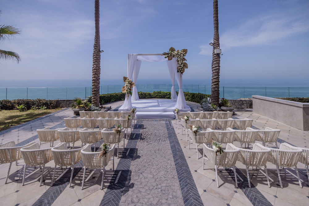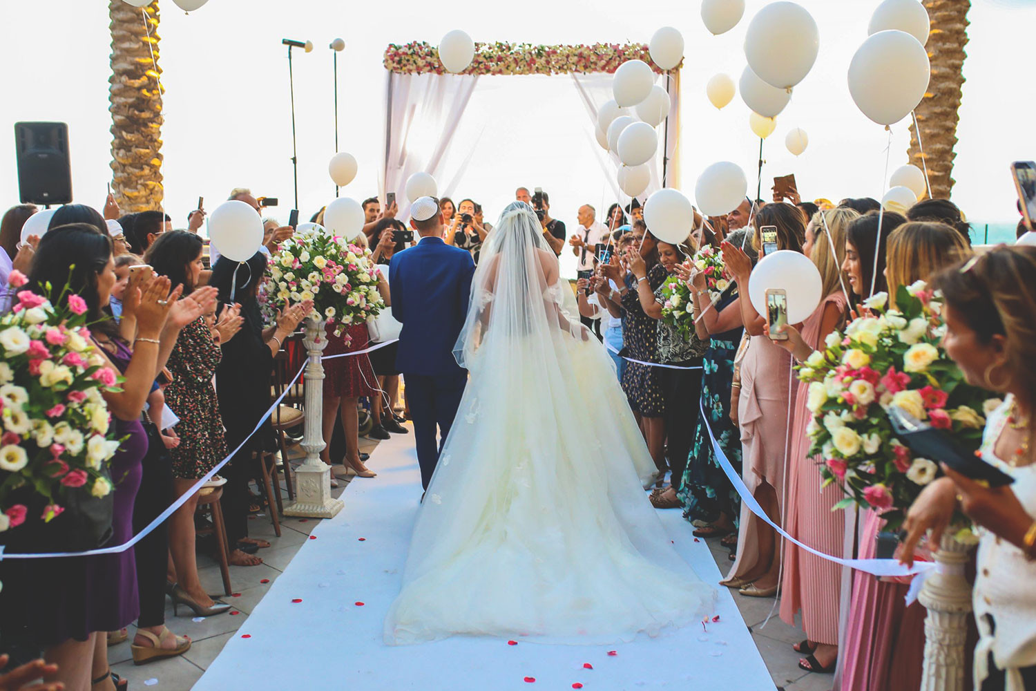 מפרידים בין הזוג המאושר לרחש הגלים, והחוויה כולה נבנית סביב החיבור הזה לטבע הפראי והכחול של הים התיכון.