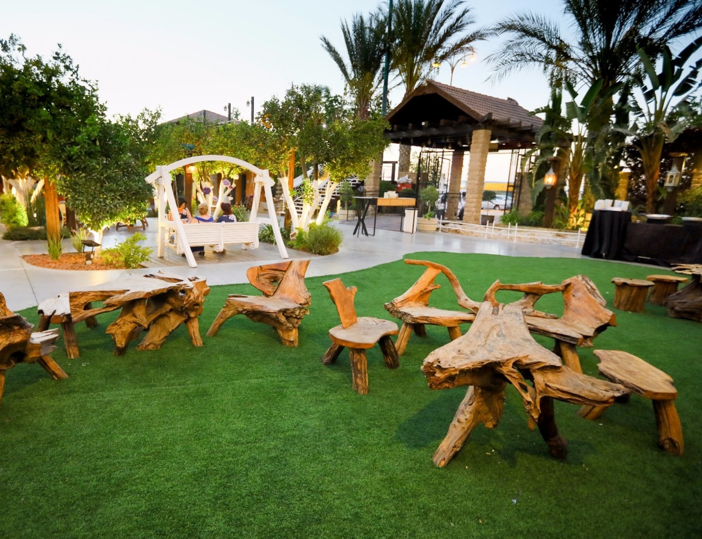 בעמדות האוכל מוצבות לאורך הגן מלצרים אדיבים וחייכניים, המגישים מאכלי ביס מפתים: עלי גפן ממולאים, סיגרים, קציצות, לחמניות קוקטייל, דגים מלוחים ומעושנים, וישנן גם עמדת אוכל סיני, פלטות פירות חתוכים וקינוחים שווים.