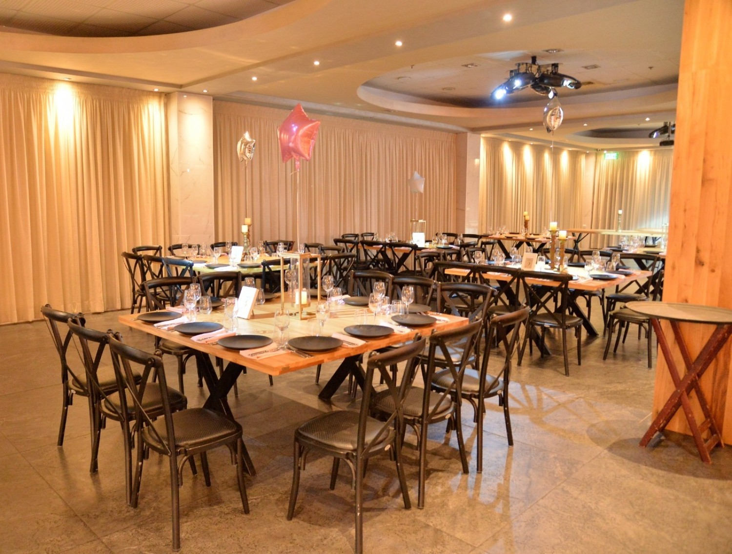 האולם עצמו מעוצב כלופט אורבני וכולל פינות ישיבה בסגנון כפרי וינטאז'י, אבל מערכות הסאונד והתאורה שלו הן הכי חדישות, איכותיות ומתקדמות שיכולות להיות – מה שאומר שאתם תקבלו שילוב אדריכלי יוצא דופן בין חדש וישן ואווירה אינטימית מיוחדת במינה. ורק כדי להמחיש למה הכוונה – השולחנות באולם האירועים בלה צ'ופ חיפה עשויים מקרונות עץ של רכבת, אבל מערכות הסאונד במקום תוכננו ע"י טובי בעלי המקצוע בתחום זה.