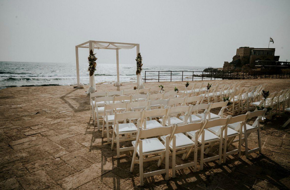 חופה מרגשת מול הים – חתונה שמתחילה בלב ההיסטוריה וממשיכה בגינה מוריקה
