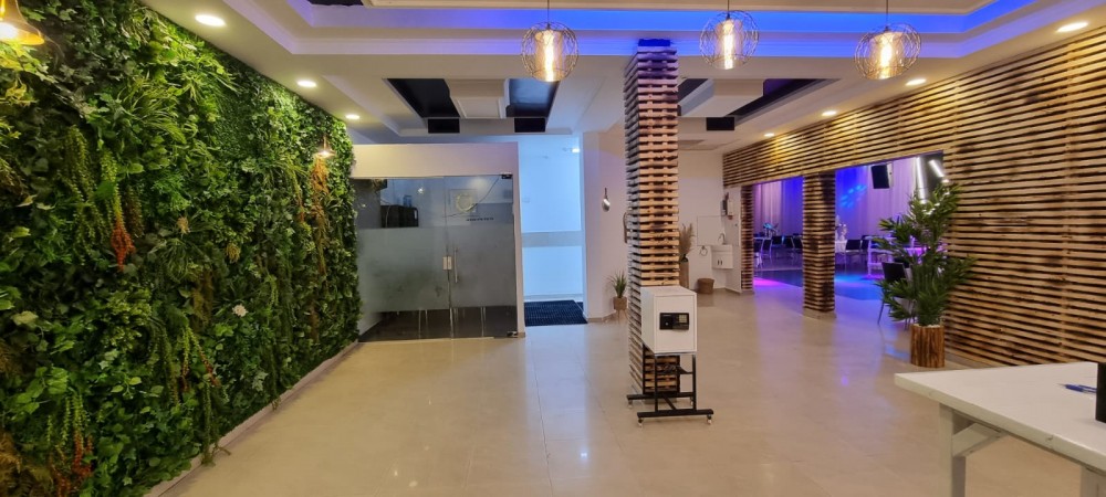 • גינה ירוקה ענקית לקבלות פנים (200 מ"ר) עם פינות ישיבה שמאפשרת לשלב בין אירוע בחיק הטבע לאירוע קלאסי באולם סגור