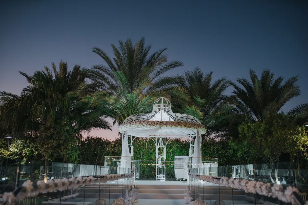 אזור חופה ייעודי ומרשים תחת כיפת השמיים מול נוף הרי יהודה, מתאים במיוחד לחתונות ולאירועים מרגשים.