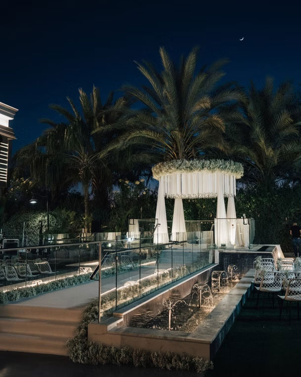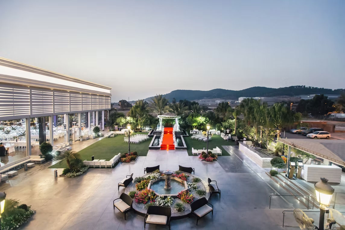 המתחם כולל גן אירועים רחב ידיים ואולם שקוף עם קירות זכוכית, המאפשרים חיבור רציף בין פנים לחוץ, נוף פתוח, צמחייה ופינות ישיבה.