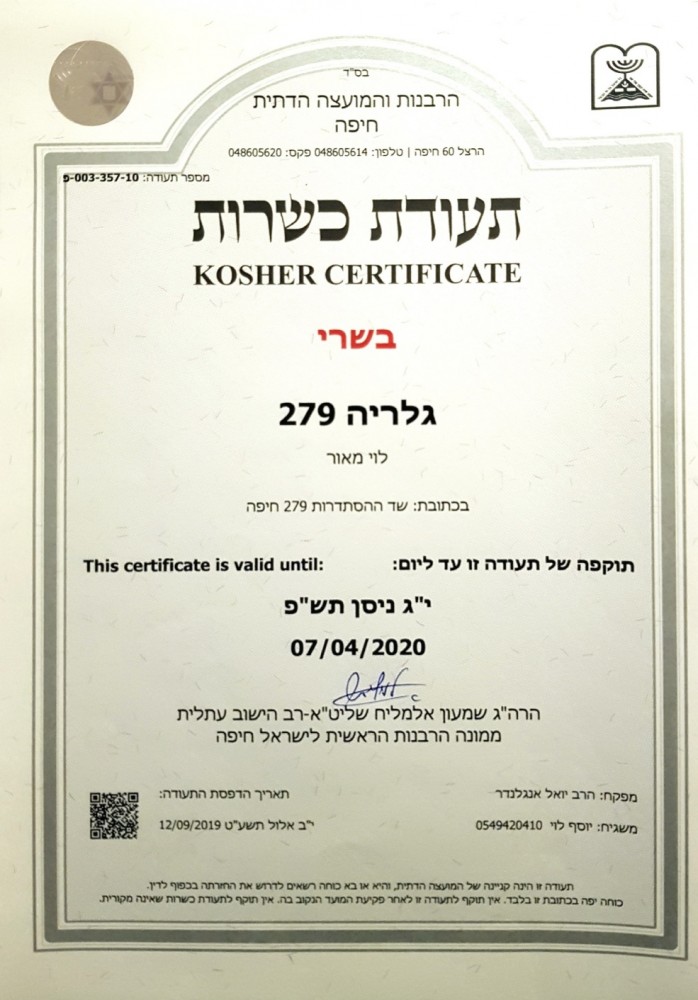 בעיר חיפה, במיקום שקט ופסטורלי, נמצאת גלריה 279 חיפה, שמכילה גן אירועים מקסים לעריכת קבלות פנים וחופות תחת שמי ים התיכון, וחלל פנימי מסוגנן לארוחות גורמה וריקודים.