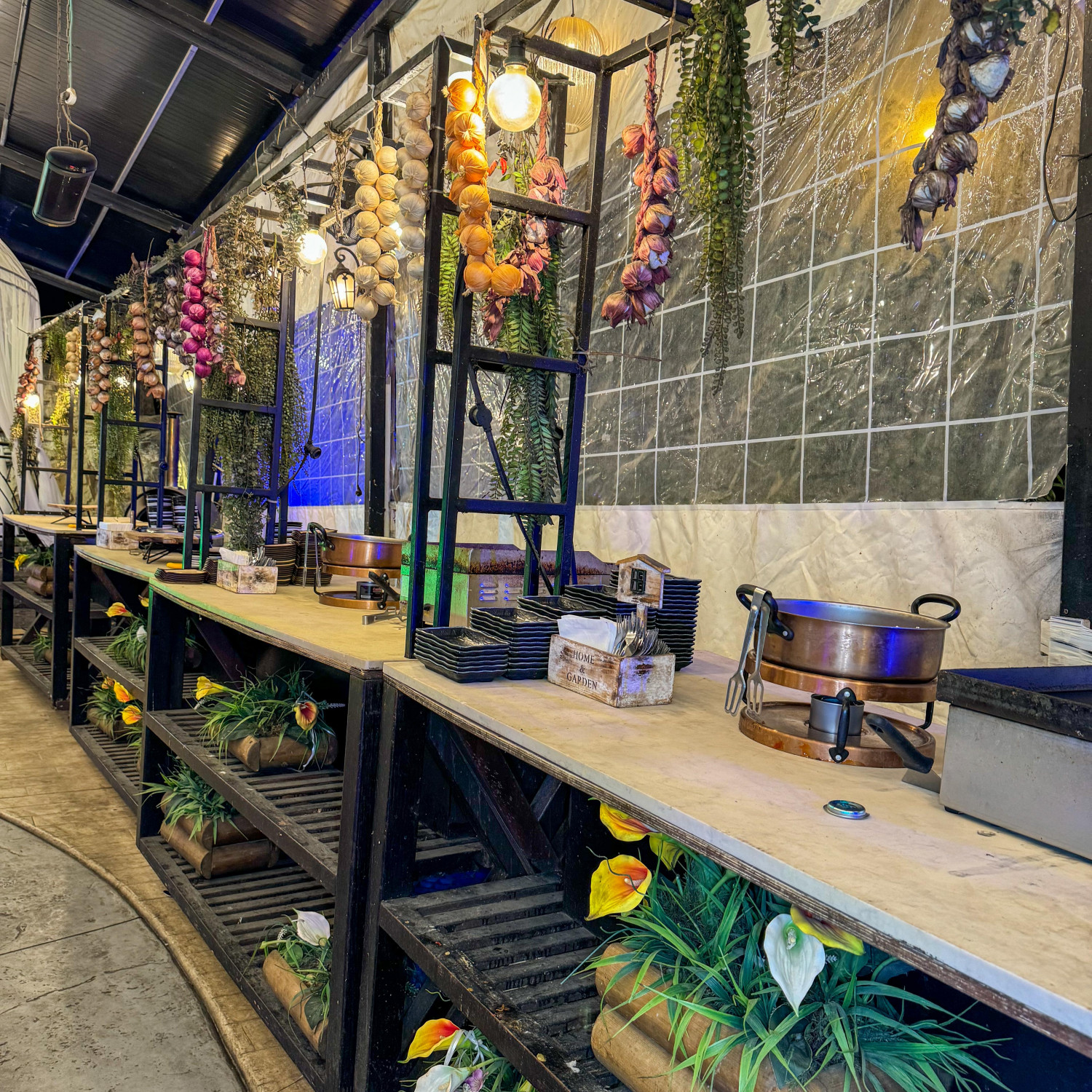 תחושת החוץ ממשיכה גם באולם הפנימי עם רצפת עץ כהה וצמחיה דקורטיבית, והאביזרים האלגנטיים מוסיפים סטייל ופאר.