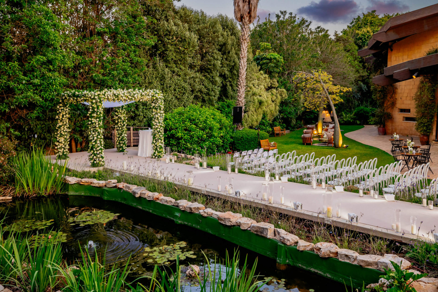 אחד מסמלי לוקא הוא הגן הפורח העוטף את המתחם. מדשאות ירוקות, עצים גבוהים, מים זורמים וריהוט עכשווי יוצרים חלל פתוח ונושם המושלם לקבלות פנים, צילומים וחופות.