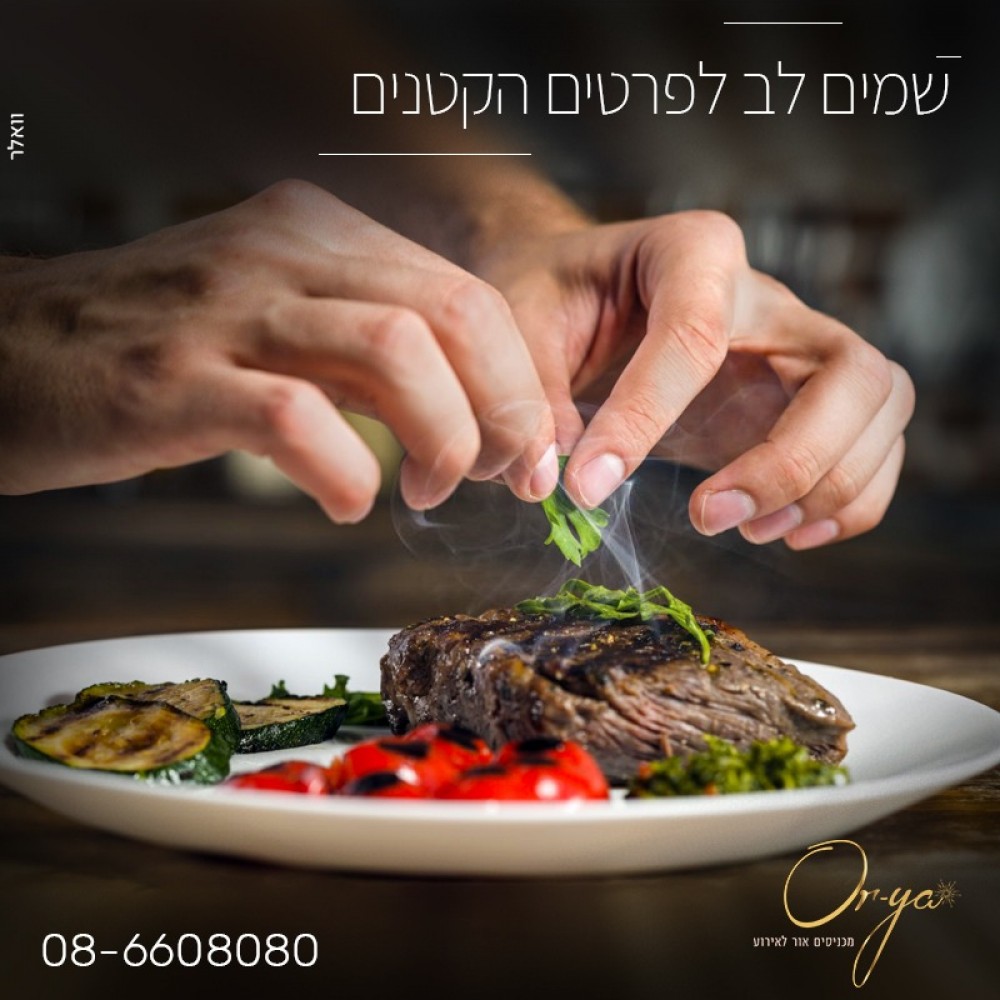 הקולינריה של אולם האירועים אוריה מהווה חגיגה לכל החושים. ביחד תוכלו להתענג על טעמים ישראליים מוכרים שעברו טוויסט מעניין ועלו לרמה הבאה עם הרבה יצירתיות וטעם טוב. חשוב לציין שלמקום יש תעודות הכשר מכובדות, וכן מתקיימת הקפדה על חומרי גלם איכותיים וטריים שהופכים למנות נהדרות, ממש בסמוך להכנה. את התוצאה המלבבת רואים וטועמים כבר בקבלת הפנים, עם מנות פתיחה מרעננות במגוון טעמים וסגנונות, מנות ביניים של סלטים וכן מנות עיקריות המקרינות שפע. המטבח וצוות המלצרים המיומן, לא נחים לרגע כל האירוע, עם צלחות מלאות בכל טוב, משקאות מכול הסוגים ויחס אישי. לקראת סוף האירוע תוכלו להתפנק ביחד עם האורחים שלכם עם מנות קינוחים מסקרנות בשלל טעמים, לצד משקאות חמים. אז תשאירו מקום לעוד קצת...