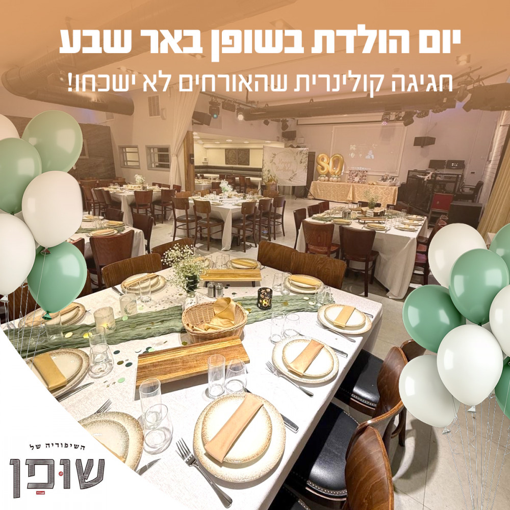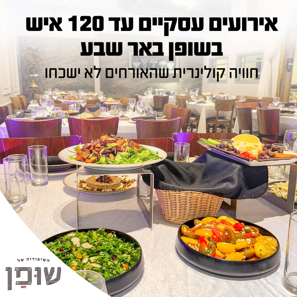 אמא. הבשר במסעדת שופן באר שבע נבחר בקפידה על ידי צוות המטבח. המקום עובד עם הקצבים הטובים באזור המספקים בשר בלתי רגיל למסעדה ובכך מאפשרים להגיש מנות שיגרמו לכל סועד לחייך. מגוון עשיר של תוספות שירעננו לכם את הצלחת וישתלבו עם הבשר האיכותי בצורה מושלמת, חגיגת טעמים שאי אפשר לעמוד בפניה. המקום מעוצב בצורה ישראלית המשדרת עממיות בטוב טעם, תוך שמירה על אלמנטים עיצוביים מודרניים הנותנים תחושה של חדשנות, שילוב מושלם המשרה אווירה נעימה במקום. מסעדת שופן באר שבע מציעה בנוסף לקיים אירועים במקום של עד 150 חוגגים, ליהנות מאווירה של אולם אירועים וקבל אוכל אותנטי ואיכותי של מסעדת בשרים. המסעדה הינה כשרה ומאפשרת לכם לחגוג אירוע איכותי במחירים שווים לכל כיס. תוכלו ליהנות מתפריט מגוון וחווית שירות יוצאת דופן. צוות מלצרים מקצועי ומסור יעניק לאורחים שירות מיוחד ויענה על כל צורך שיעלה במהלך האירוע. שילוב של אוכל איכותי ותודעת שירות מיוחדת במינה – זאת הסיבה מדוע המקום מצליח להוות בית איכותי לחובבי בשר בפנינת הדרום כבר מזה שנים רבות. אם אתם חובבי בשר איכותי וחשבתם לשלב בין השמחה שלכם לתשוקה לבשר, אם אתם אנשים שלא מתפשרים על הטוב ביותר לכם ולאורחים שלכם, התקשרו עכשיו וקבלו הצעת מחיר משתלמת במיוחד לאירוע שלכם.