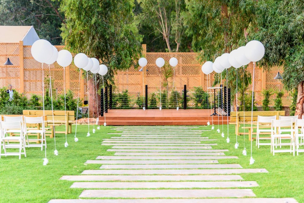 שחייה ענקית ואווירה של טבע המשולבת עם קרני השמש החמימות וציוץ הציפורים. החופה המעוצבת והרומנטית ממוקמת תחת כיפת השמיים ובלב הגן הטבול כולו בירוק.